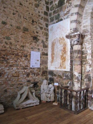 Fresque, colonne et chapiteau romans, chapelle d'Etival